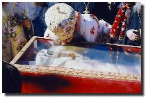 Then the superior [of the monastery] was taken ill, and the saint appeared to him and said: "Why are you not lighting the lamp on my grave? Know that the light of your candles is not needful to me, because God has made me worthy of His eternal, heavenly light, but it is needful for you. When you burn a light on my grave, you urge me to pray to the Lord for you." From this it is clear that the goal of our veneration of the saints is to remind them, who are worthier than we, to pray to God for us and for our salvation.